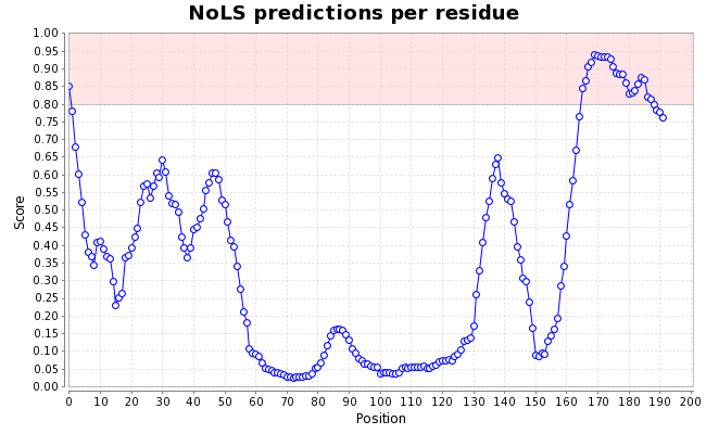 2 NoLSs are predicted in this protein:MGRNKKKKRDGDDRRPRLVL (between positions 1 and 20)