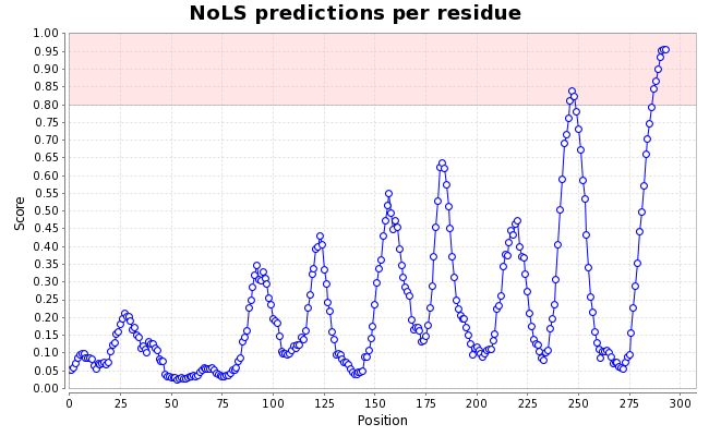 2 NoLSs are predicted in this protein:VRLSVSKREKGRRKRANVMSSQ (between positions 247 and 268)